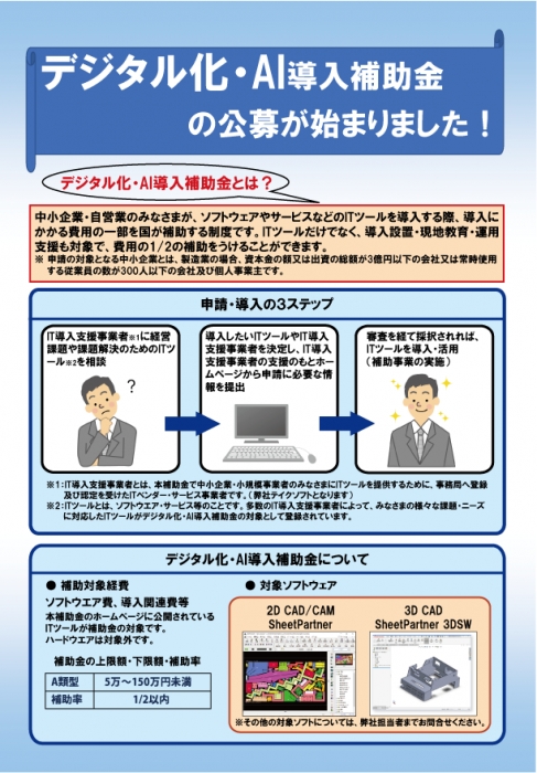 2026/4/15弊社製品 SheetPartnerとSheetPartner 3DSWがデジタル化・AI導入補助金(旧 IT導入補助金)の対象ソフトウェアとして認定されました。